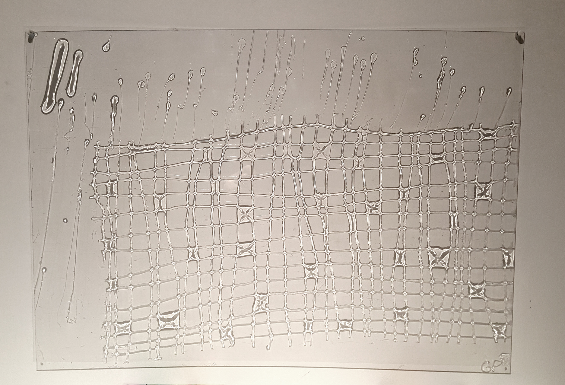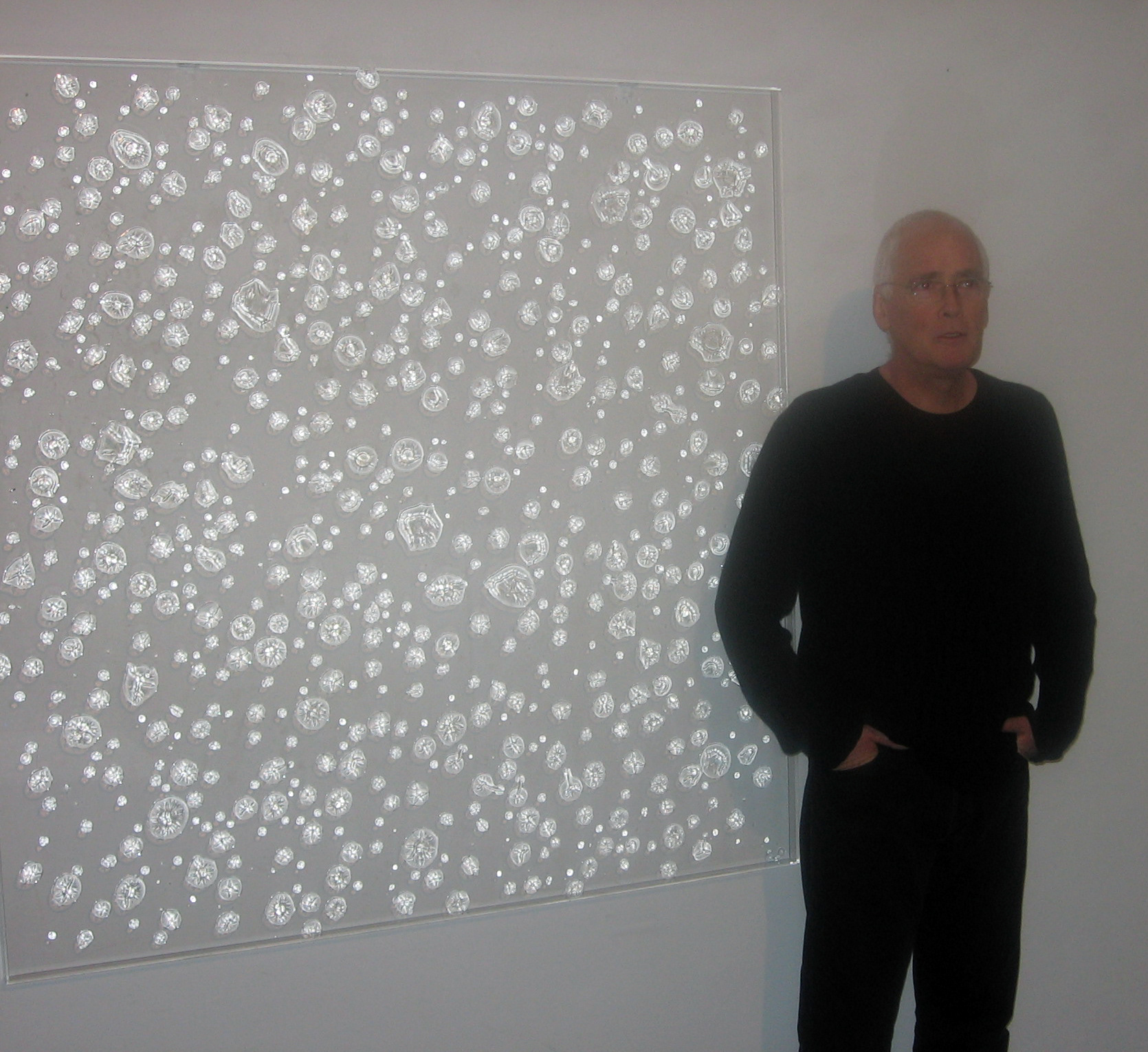 Tel un alchimiste contemporain, j'ai fusionné des polymères incolores et du polycarbonate transparent créant ainsi une matière transcendante qui s'illumine sous les projecteurs: une danse céleste se déployant sur le mur immaculé ou la toile vierge. Ces ombres, telles des gouttes d'essence vitale, évoquaient les prémices du cosmos, les "étincelles du hasard" chères à Henri Atlan. Cela anticipait-il une disparition programmé de mon oeuvre picturale en oeuvre numérique ? Y avait-il un lien avec un cancer déclaré en 2010?